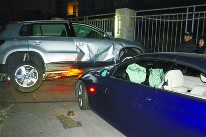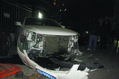 目击者陈先生告诉记者,当时他正下楼扔垃圾,看到这辆宝马车开着远光灯从小区门口开了进来,宝马车直接冲着一辆轿车就撞了上去。“当时就听见砰一声,宝马车擦过4辆车冲向第5辆车,然后顶翻了第6辆越野车。”陈先生回忆起当时的情形仍然心有余悸。