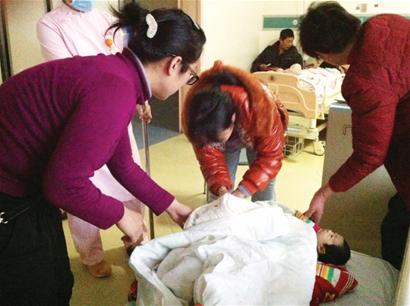 12月10日上午,刚满40天的宝宝突然有些感冒,不断喘粗气。冷女士挺担心,就赶紧带宝宝来到胶州市人民医院。在小儿科,宝宝被诊断为肺炎和支气管炎,需要打吊瓶治疗。“当时小儿科没有床位,我们为了打吊瓶只好每天去医院一次。直到第3天,医院腾出病床了,就通知我们住进去。 ”住进医院,冷女士和牟先生也暂时安心了。可住进病房后,宝宝还一直哭闹,把冷女士两人折腾得够呛。每天晚上,冷女士都在病床边陪着儿子,牟先生就回家照顾女儿。