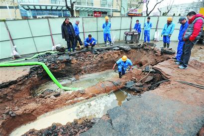 记者在爆管现场看到,延安三路的柏油路面已经被大水冲了起来,十多米的柏油面整个掀到路边,自来水抢修工人已经挖开了一个20多平方米的大坑,坑内一根直径600毫米的自来水供水管道正在向外冒水。工人们调来一台大型抽水泵,将涌出的水排到不远处的一个排水古力井当中。“我们已经关闭了周围的阀门,现在水流不大了,漏点已经找到,马上就要进行修复。”抢修工人告诉记者。