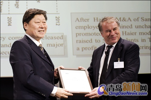 日前,西班牙IESE商学院与瑞士洛桑IMD商学院邀请海尔集团首席执行官张瑞敏赴欧演讲,阐述海尔人单合一双赢模式的创新和实践。期间,为表彰张瑞敏对现代管理艺术及实践做出的贡献,瑞士洛桑IMD商学院将“IMD管理思想领袖奖”颁发给了张瑞敏。