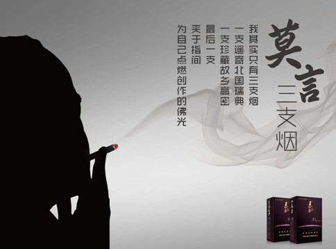 昨日有网友在烟草权威论坛逍客网爆料,并发布一组代言广告图片。称莫言将为山东烟草品牌泰山佛光代言,并将推出“莫言限量版”。记者看到,每支 烟均以《红高粱》、《檀香刑》、《生死疲劳》等10部莫言小说命名,并采用了极为奢华的紫檀木包装,图片显示仅有100套,每套售价最低竟高达2万元。