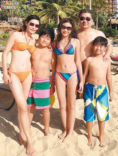 一代性感女神叶玉卿完成在港拍摄贺岁片的戏份后,便返回纽约与家人享天伦。为了庆祝幼子Jefferson十岁生日,叶玉卿一家五口到了夏威夷度假,于沙滩上穿起三点式的叶玉卿身材依然大好。令人最惊讶的,是13岁大女胡芷欣除了遗传母亲的美人胚子外,连身材也承受了母亲的优良传统,犹如两姐妹一样!叶玉卿说:“女儿跟我一样好喜欢购物,她现在还会帮我选泳衣,知道什么款式合适我的。”她笑言女儿正值发育时期,喜欢吃东西,与她一样吃不停。而一家人为幼子切蛋糕唱生日歌,叶玉卿表示向Jefferson送上电脑作生日礼物。