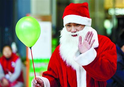 后天就是圣诞节,众多圣诞老人出现在岛城商场、酒店和街头,为商家营造节日氛围。昨日,记者在多个商场、百货店采访发现,由于行业门槛低,多数商家直接到大学社团联系勤工俭学的大学生来扮成圣诞老人,而以往扎堆的圣诞老人培训班在岛城很难找到。培训单位认为圣诞老人盈利时间短,而且培训出的圣诞老人更迭太快、没有持续性,因此不需要特殊培训就能直接上岗的大学生成为圣诞老人主力军。