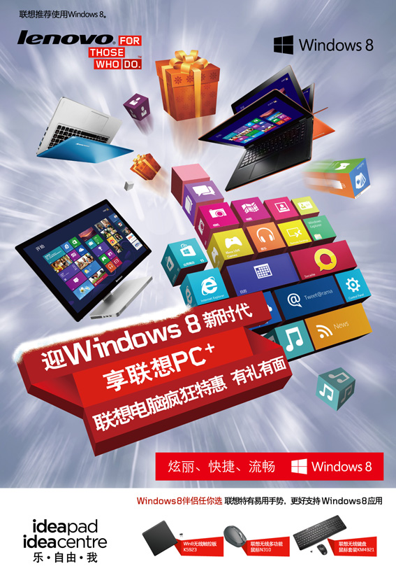 12月20日至2013年2月8日期间,联想消费idea产品启动了以“迎Windows8新时代 享联想PC+”为主题的冬季促销活动,活动覆盖联想家庭云中心、IdeaPad U系列、IdeaPad Y系列、IdeaPad S系列等电脑产品。届时,英特尔i5处理器以上配置的联想消费idea冬季促销产品将全部预装Windows 8系统。想要革新PC体验的你,还不借着冬季促销的东风,入手绝佳展现Windows 8魅力的联想消费idea产品,抢先畅享极致完美的Windows 8新体验! 联想IdeaPad Yoga:最佳双模 玩转Windows8