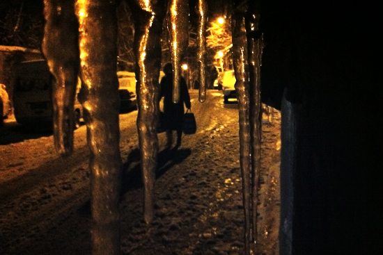 风雪夜归人 岛城今冬首场大雪夜景 (青岛新闻网记者周琦 摄)