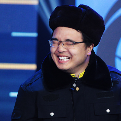“俏夕阳”舞蹈团炫舞《全民style》、中国好声音青岛籍歌手献唱、“南城二哥”说唱等节目为首届网络春晚增色不少,但近期窜红的“萌主”交警薛海涛激情演绎萌翻全场,爆笑不断。(记者 周琦 摄影报道)
