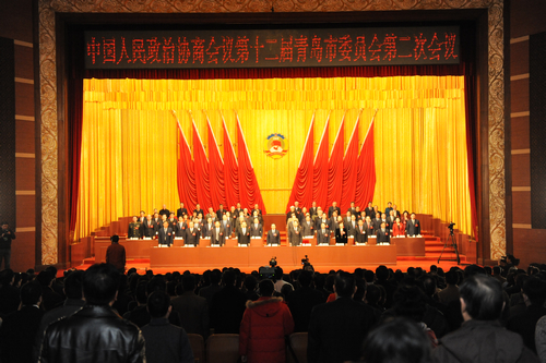 在节俭而热烈的气氛下,政协第十二届青岛市委员会第二次会议隆重开幕