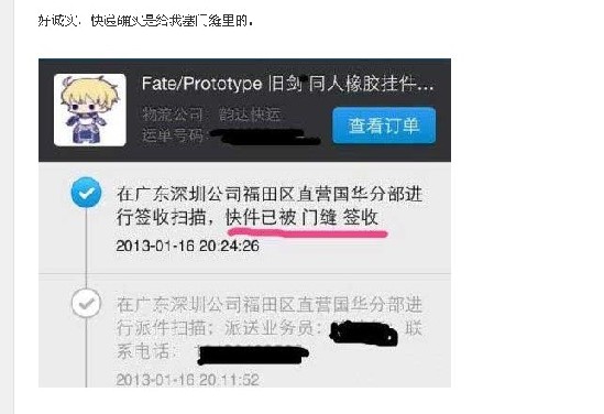 记者对类似现象在网上进行搜索,发现同样是韵达快递广东深圳公司福田区直营国华分部,一位匿名网友发出的图片显示,1月16日,该公司在投递快件时,网友所买的“旧剑、同人橡胶挂件”竟然被“门缝”签收。