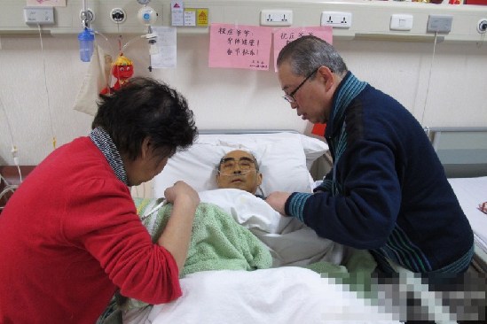 资料图:103岁的文怀沙老先生到医院看望庄则栋。佐佐木敦子/摄
