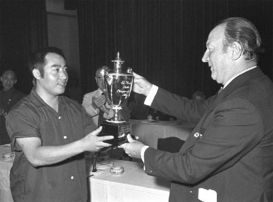 庄则栋(1940年8月25日-2013年2月10日),江苏扬州人,中国著名乒乓球运动员,第十届中共中央委员。图为1963年4月16日,庄则栋夺得第27届世乒赛男单冠军。CFP