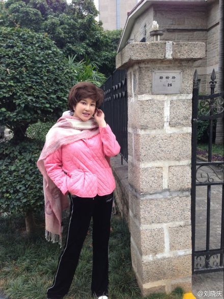 刘晓庆在自家别墅前拍照。