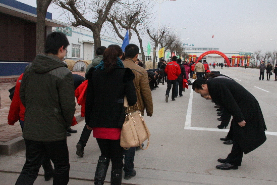 亨达董事长王吉万率领全体高管鞠躬迎接员工