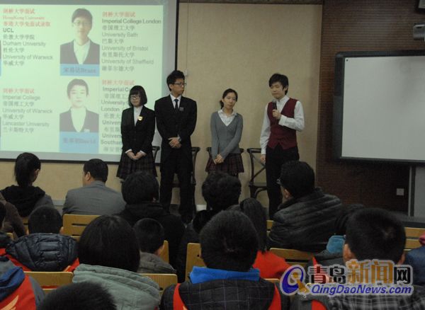 这周,老师同学们大多已经返校开始了预习周。昨天,我校再次开设英美名师国际课程体验日应届近百人的“体验团”,火爆程度与年前体验课不相上下。不过,昨天最大的亮点是青岛晚报20多人的学生小记者团。他们身穿统一的小记者制服,用手里的纸笔和相机,记录下在我校一整天的点点滴滴。我校学生不仅充当了助教角色,还在说明会上与家长团面对面坐在一起,分享自己进入我校后在学习、性格、自信和综合能力方面的变化和成长。