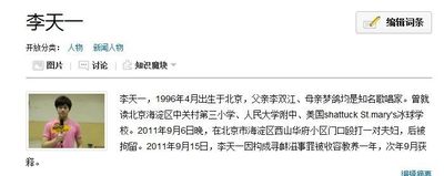 李天一,著名歌唱家李双江之子。1996年4月出生于北京音乐世家,母亲梦鸽是知名歌唱家。曾就读北京海淀区中关村第三小学、人民大学附中、美国Shattuck-St. Mary's School(沙特克圣玛丽学院)冰球学校。2011年9月14日下午,李双江对其子李天一打人事件做出处理回应后,事件中受伤夫妇与李、苏二人家长会面,双方达成和解。2012年9月19日,李天一被解除教养。
