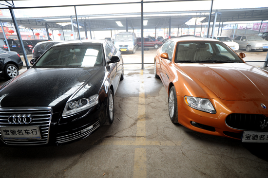 超级豪华车一直是马路上的“眼球杀手”,但动辄几百万元起步的高昂价格也另大多数人望而却步,今天上午记者探访萍乡路二手车交易市场发现,不少价值几百万的名贵豪车纷纷现身,甚至有些都是连牌都没挂的新车。