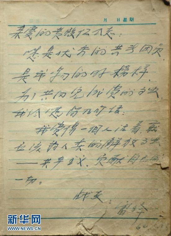 雷锋50年前写给战友的留言手迹,最近在辽宁省辽阳市“现身”。