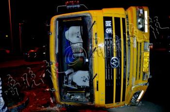 大货躲警察深夜侧翻