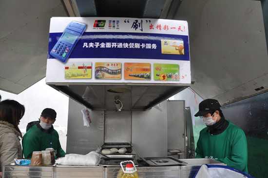 青岛新闻网3月8 日讯 自今天起,持岛通卡可以购买“凡夫子”早餐了!目前,我市60余辆凡夫子行动快餐车已安装好琴岛通刷卡设备,市民可以刷琴岛通卡购买早餐,只需在pos机上刷一下即可完成付款,既便利又快捷,不但不用准备零钱、节省了时间,还能防止食物跟钱款接触,保障了食品的安全卫生。