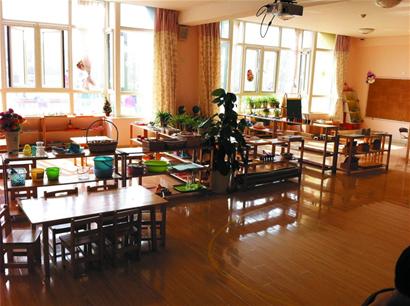 这家位于海尔东城国际小区里的幼儿园,同样打着蒙氏教育的招牌,不过湖光山色幼儿园的老师说自己是国际版的蒙台梭利,而这里是中国版的蒙台梭利。尽管“蒙台梭利”的国别不同,但两所幼儿园的教学方式基本类似,同样是将不同年龄的孩子混编到一起,孩子入园后,由幼儿园根据哪个班缺哪个年龄段的孩子进行分配,这所幼儿园同样对入园的幼儿园没有年龄限制,但必须提前半个月到儿童医院体检。