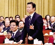 十二届全国人大一次会议14日上午在人民大会堂举行第四次全体会议,以无记名投票方式,选举李源潮为中华人民共和国副主席。在热烈的掌声中,李源潮向全场鞠躬致意。