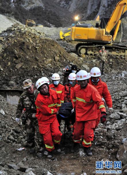 30日17时35分左右,在灾害发生31小时后,救援人员在拉萨市墨竹工卡县山体塌方现场挖出第一具遇难者遗体。