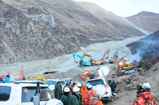 3月29日6时左右,位于中国黄金集团华泰龙公司甲玛矿区内的墨竹工卡县扎西岗乡斯布村普朗沟泽日山发生山体自然塌方并引发泥石流。据初步统计,83名工人被埋。