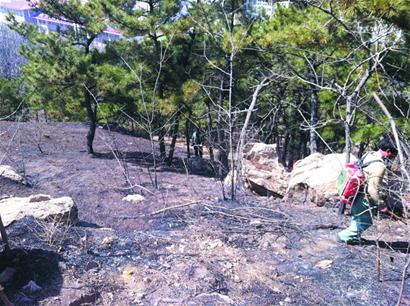 因为最近几年,每逢清明节前后,架子山上常发生山火,所以昨天一大早护林员就提着灭火器划片巡逻,当发现该地段冒起浓烟后,护理员们用了不到十分钟就赶到现场,并利用灭火器将明火扑灭。据防火队员估计,这场山火又是市民清明节上山烧纸造成的。