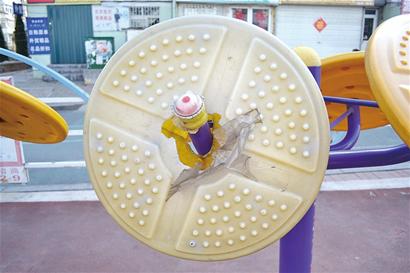 现场 多半体育器械“伤痕累累”,健身伴有隐患