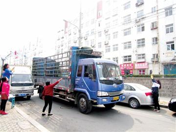 把水管铺设完毕后,一名老师站在马路中间,用一根竹竿将水管挑到半空中,而这时马路两侧的老师也拿起工具,踩在凳子上,将水管挂在路两旁的树枝上,由于树枝较高,挂水管时还用上了拖把等工具。固定好之后,水管横跨在马路上方,既能接水,也不影响过往车辆。老师们刚刚固定好水管,这时一辆大货车缓缓驶来,车身近3米高,为了让大货车通行,路两侧的老师再次爬到板凳上,拿着拖把、木棍等使劲向上挑,不过任凭怎么挑高,仍无法让货车通行。 “不行,先拆下来吧!”老师们无奈地把固定好的水管慢慢卸下,抽到马路一旁,待大货车通行以后,再重新固定。