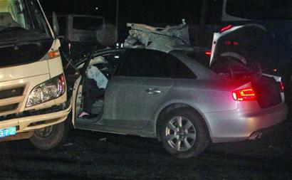 从交警和家属的交谈中记者得知,男司机姓张,他和先后遇难的小孙和小常都只有24岁。小张家就住在靠近车祸现场的居民小区,当天他们三人在一起聚会后,小张驾驶这辆奥迪车送两名朋友回家,没想到发生了车祸。昨天记者从交警部门得知,两名不幸去世的男青年家人已经联系到,被撞4辆车的司机随后也到交警部门配合调查。(记者 黄飞 摄影报道)