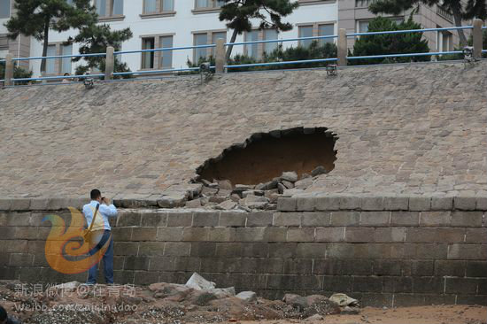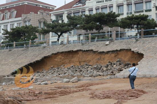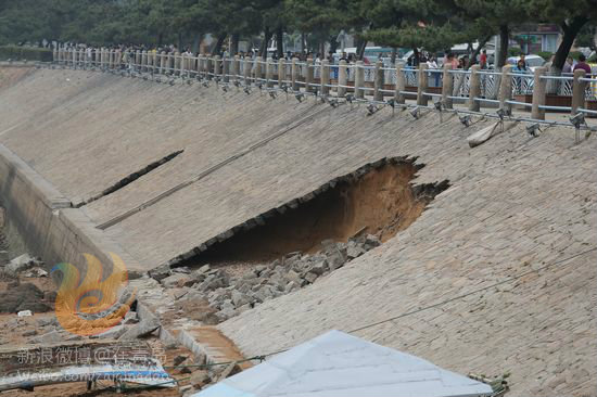 独家:前海栈桥不堪暴风雨侵袭塌陷