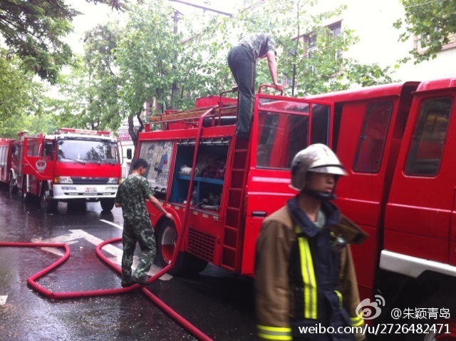上海支路小学今天停课一天,着火原因正在调查。受大火影响,消防和交警对上海路、上海支路、甘肃路、武定路进行交通管制。(青岛新闻网记者 朱颖)