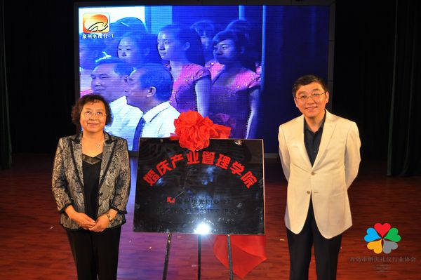 青岛婚庆礼仪行业协会会长翟爱俊(左)受聘为副院长