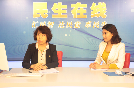 青岛市海洋与渔业局副局长王淑莲(左一)与网民在线交流 (周琦 摄)