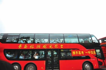 昨天早上6时,三辆红色的双层观光巴士就在一中学生公寓门口等候考生,早上7时准时发车。车上载着的都是青岛一中的考生,这些考生的考点在二中,由于两个学校距离较远,交运温馨巴士特别派出三辆都市观光巴士负责高考期间接送考生。交运温馨巴士专门抽调三位超过10年驾龄的优秀驾驶员驾驶高考专车,将考生安全、顺利送达考点。