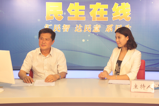 青岛市人民政府侨务办公室副主任陈春雷(左一)与网民交流 (周琦 摄)