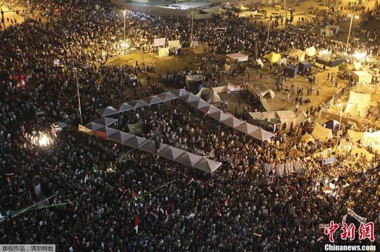 图为穆尔西反对派在开罗解放广场集会抗议。