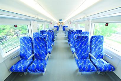 昨日,记者走进时速160公里城际动车组的车内看到,人性化的布局,全方位的旅客信息系统,蓝色的座椅,透明的行李架,给人以简洁、明快、舒适的清新之感。