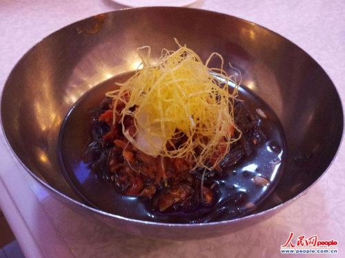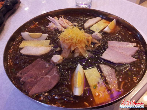 朝鲜特色铁盘冷面(本网驻平壤特派记者 程维丹摄)