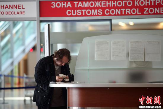 6月28日,美国前国家安全局雇员、“棱镜门”事件揭露者爱德华·斯诺登从香港飞抵莫斯科后,在莫斯科谢列梅捷沃机场过境区已逗留第六天,仍然神秘隐身。图为28日下午,一名国际航班乘客在海关外清点钱物。中新社发 贾靖峰 摄