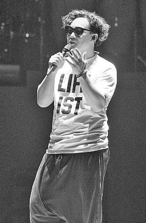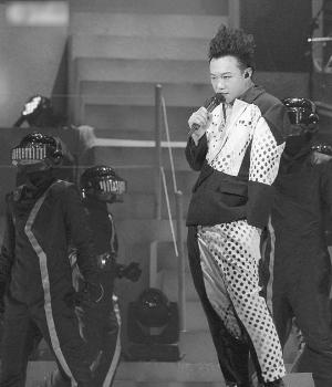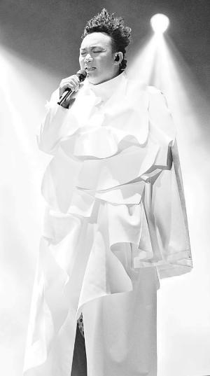陈奕迅当晚换上多个造型,包括白色荷叶服、黑白波点西装等,吸引眼球,此外他还以T恤出场,不惧“发福”身材。