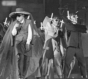 ▲陈奕迅拖着巨人登场、与“僵尸”共舞,舞台风格怪诞有趣。