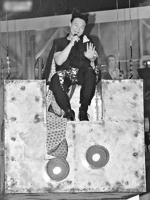 陈奕迅在没用安全带的情况下吊到半空演唱。