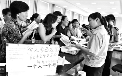 6月28日,安徽合肥市公安局出入境管理局业务大厅熙熙攘攘,申请出境的家长们带着孩子排队领号。中新社发