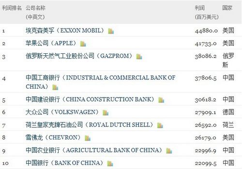 从“世界500强”赚钱能力看,石油巨头埃克森美孚的利润高达448.8亿美元,苹果公司利润为417.3亿美元,高居最赚钱公司的状元和榜眼。而“工、建、农、中”四大行成为中国最赚钱企业。