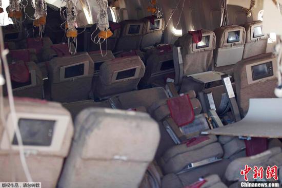 当地时间7月7日,美国国家运输安全委员会(NTSB)发布坠毁在旧金山机场的韩亚航空214航班内部照片。
