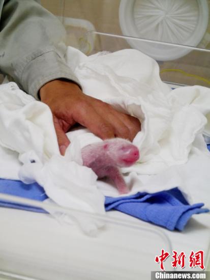 7月8日,记者从中国保护大熊猫研究中心获悉,赴台大熊猫“圆圆”经过112天的怀孕期,于7月6日晚20点05分,在台北市立动物园大熊猫顺利产下一只雌性熊猫幼仔。图为“圆圆”幼仔在育幼箱。(资料图)中新社发 钟欣 摄