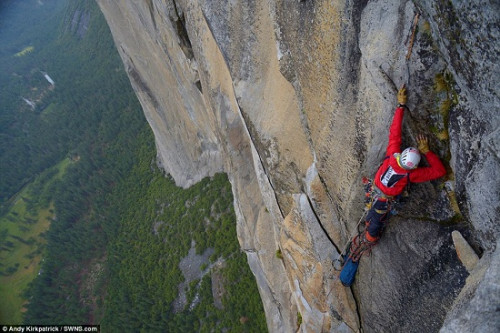 来自英国的史蒂文成功攀上美国加州近千米高的岩石。
