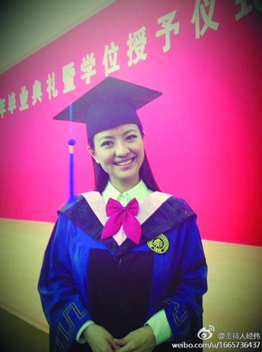 7月10日,经纬通过微博晒攻读北京大学的硕士毕业照,照片中的经纬身穿硕士学士服,招牌式的笑容,看上去知性而美丽。据悉,涂经纬是中国传媒大学播音主持本科毕业,但之后她不仅就读了北京电影学院在职研究生,并在北京大学广播电视专业攻读艺术硕士。此番从北京大学毕业,应该是已拿到了北大的艺术硕士证书。 (弥尔)