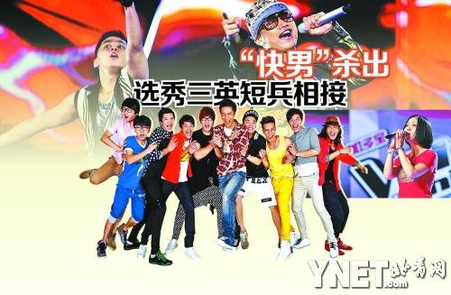 在时间上,“快男”将在本周五直接碰撞《中国好声音》。两个节目一个主打“好声音”,一个主打“90后真人秀”,虽然各有侧重,但比赛项目却全是唱歌。就选手来讲,“好声音”的选手是导演组挖来的准专业唱将,“快男”则是帅哥中唱功最好的一批人。谁胜谁负,要看观众兴趣。不过今年“快男”中,原创选手居多,此后的比赛他们是否有更优秀的原创作品继续呈现?如果没有,光靠改编和翻唱又是否能够继续保持优势?这一点有可能成为“快男”隐忧。